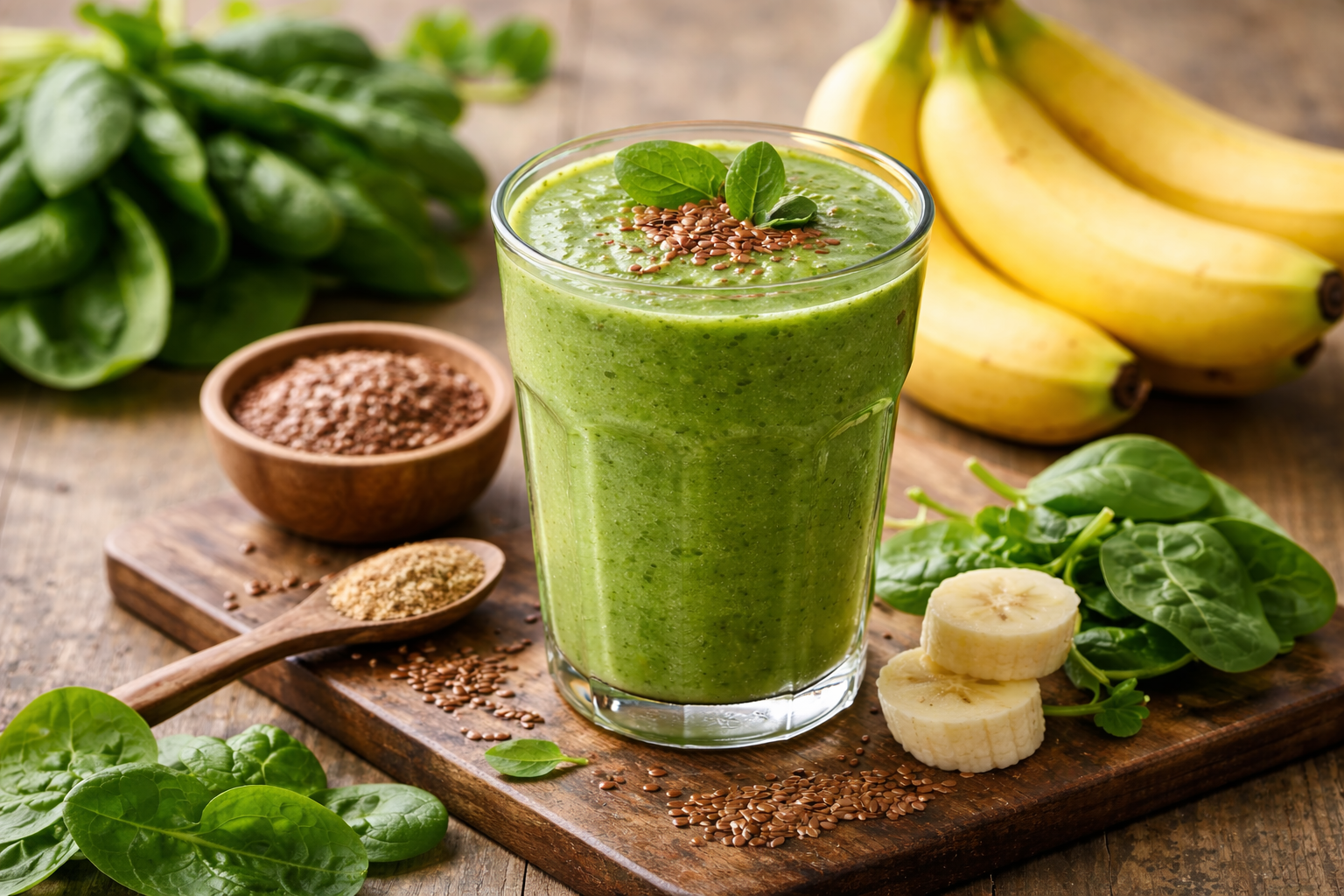 Batido de espinafres, banana e linhaça