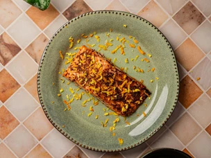 Lombos de salmão na frigideira com molho cremoso de limão e alho